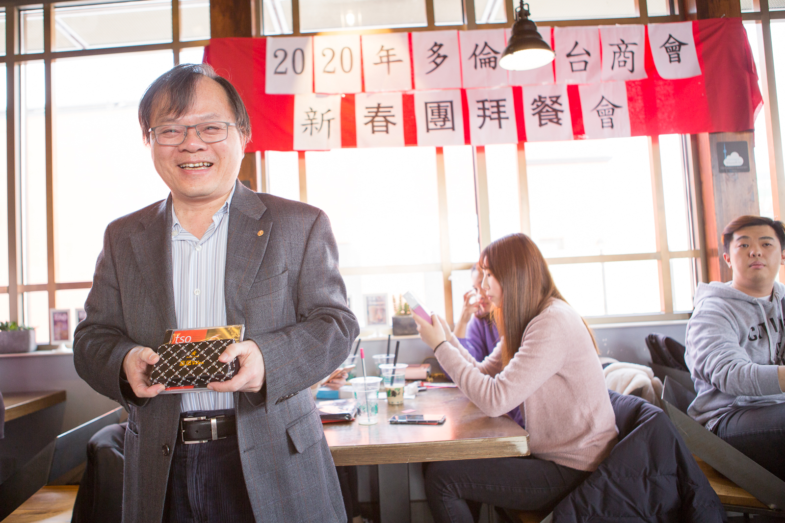 駐多倫多台北經濟文化處處長徐詠梅、副處長陳冠中,文化中心主任孫國祥、副主任董至中,台貿中心主任黃純政及前會長林蔡亮亮、朱景漢、範玮、湯遠芬、衛振興、施永輝、莊博雄等及會員、義工代表近百人參加了團拜活動。